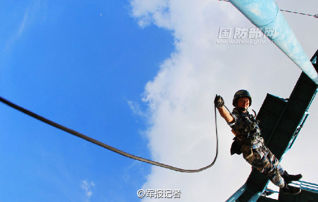 They are the soldiers in Chinese Marine Corps. From the land to the sea, from the forest to the desert island, the female soldiers shed their sweat. Tough training makes them strong and unbeatable. (Photo source: microblog of PLA Daily)