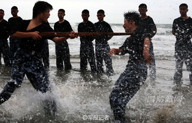 They are the soldiers in Chinese Marine Corps. From the land to the sea, from the forest to the desert island, the female soldiers shed their sweat. Tough training makes them strong and unbeatable. (Photo source: microblog of PLA Daily)