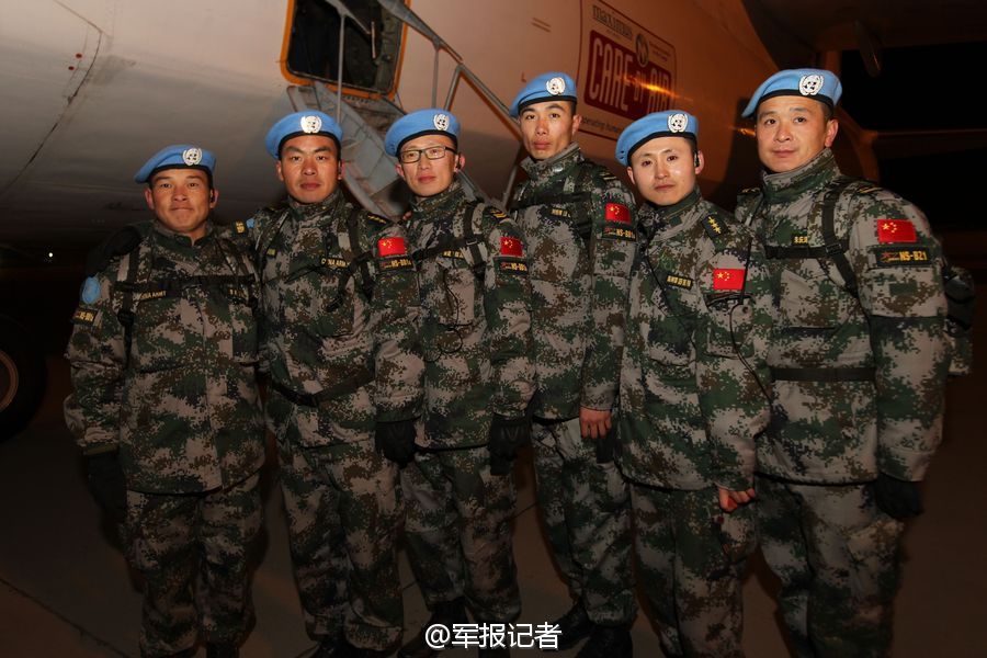 China's first team of peacekeeping battalion departs from east China's Shandong province, Jan. 8, 2015. The team consists of 24 soldiers. Six flew from Yaoqiang Airport in Jinan and 18 flew from Laishan Airport in Yantai. The six soldiers escorted materials and equipment in a An-124 cargo plane. (Photo/81.cn)