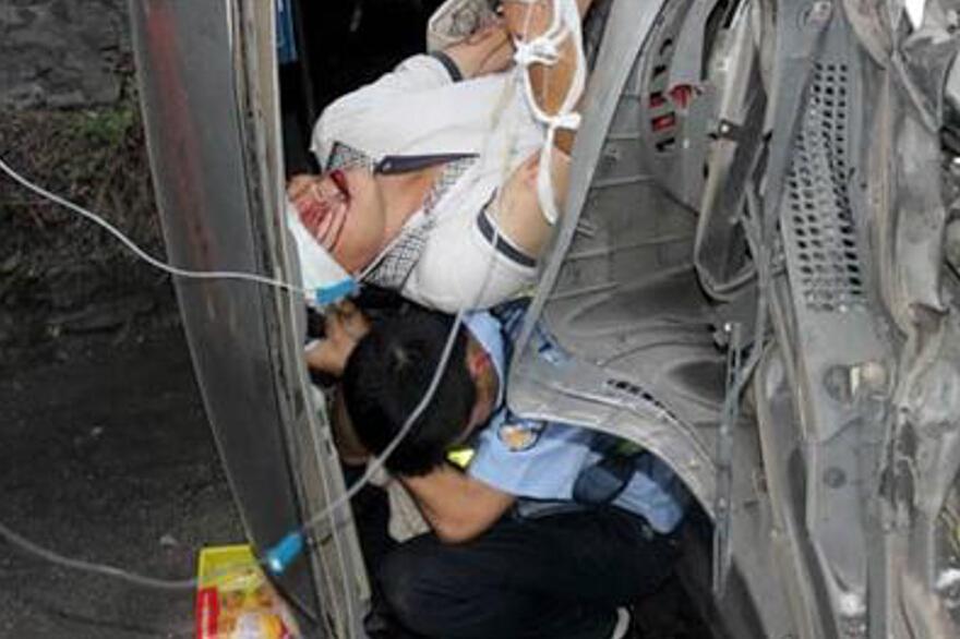 A Chinese policeman saves a wounded man. (Xinhua/Photo)