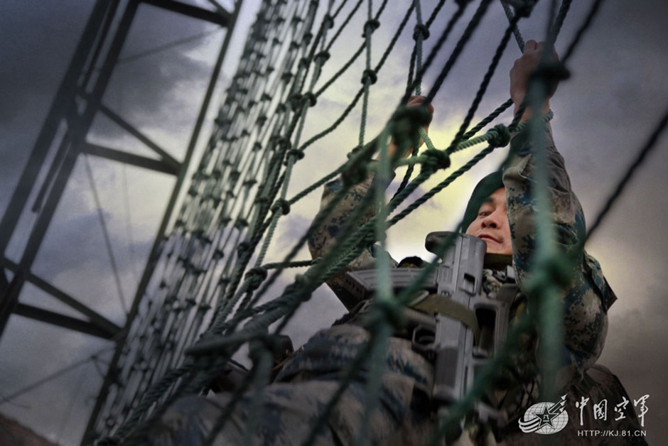 Climbing a net rope. (81.cn/Fang Chao, Li Ming)