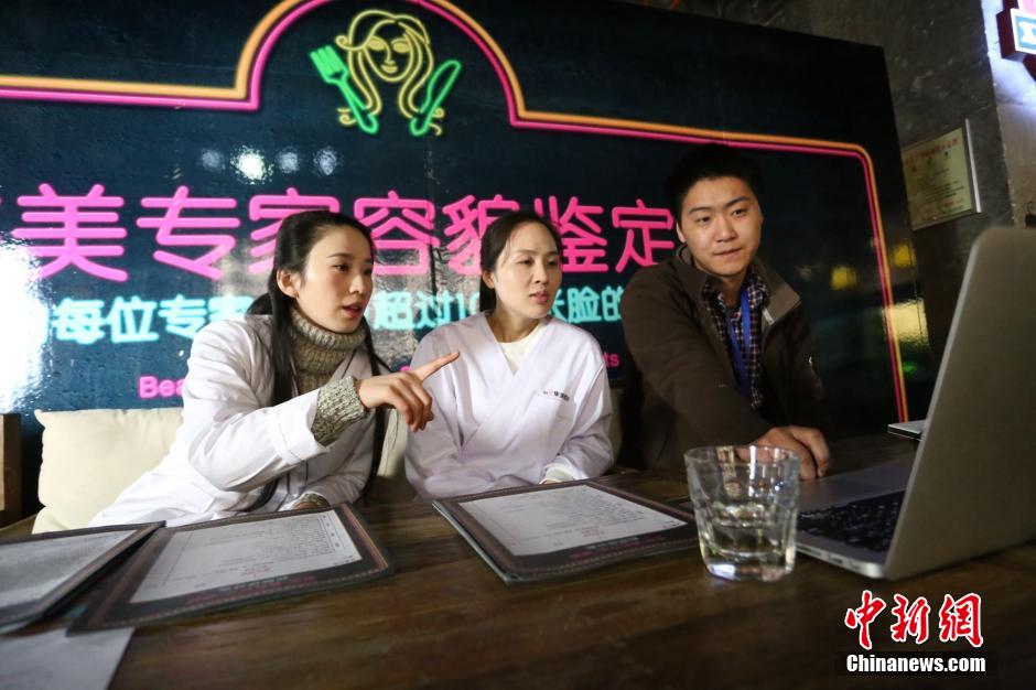 On Jan. 12, a restaurant holds a activity “eat free if you are beautiful enough”. Customers had their face scanned on a computer and orthopedic specialists would give scores to their appearances. The customers were grouped. The top five of each group would have their food for free. (Photo/Chinanews.com)