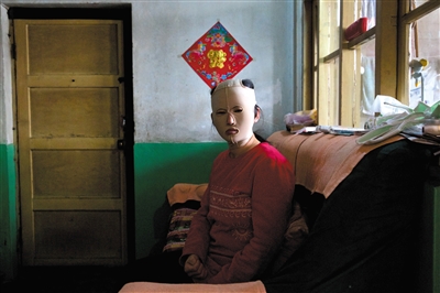 Jin, wearing a repair mask, stays at home. She is afraid of going out. (Photo/Beijing News)
