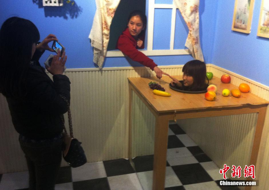 A lot of young people were attracted to the new 3D art gallery in Shijiazhuang on Jan. 13, 2015. Hundreds of different 3D experiences presented visitors with a thrilled and unforgettable journey