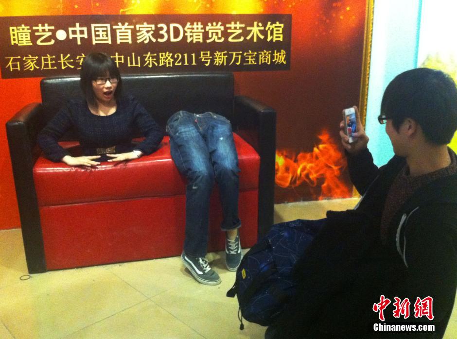 A lot of young people were attracted to the new 3D art gallery in Shijiazhuang on Jan. 13, 2015. Hundreds of different 3D experiences presented visitors with a thrilled and unforgettable journey