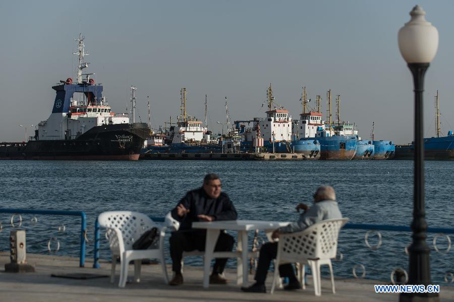 Ships are seen at a port in Ismailia, a city by the Suez Canal in Egypt, on Jan. 14, 2015. Egypt launched the new waterway project in August 2014, and the construction was ordered by Egyptian President Abdel-Fattah al-Sisi to be completed in one year. (Xinhua/Pan Chaoyue) |