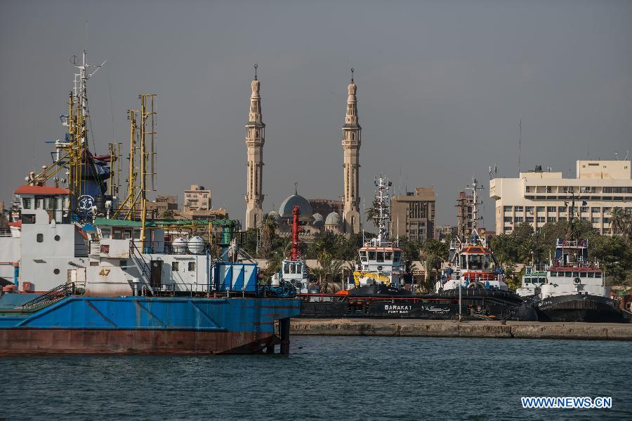 Photo taken on Jan. 14, 2015, shows a view of a port in Ismailia, a city by the Suez Canal in Egypt, on Jan. 14, 2015. Egypt launched the new waterway project in August 2014, and the construction was ordered by Egyptian President Abdel-Fattah al-Sisi to be completed in one year. (Xinhua/Pan Chaoyue) |