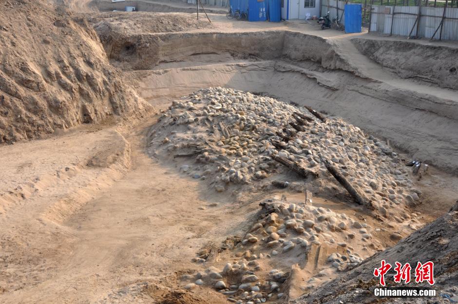 According to news released by Cultural Relics Bureau of Shaanxi Province on Jan. 15, archeologists have found remains of five ancient large bridges on the north side of the site of Chang’an City of the Han Dynasty (202BC-220AD). It is the first time that so many ancient large bridges have been found at one site. (Chinanews/Zhang Yuan)