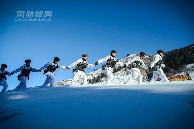 PLA border guards patrol amid freezing cold