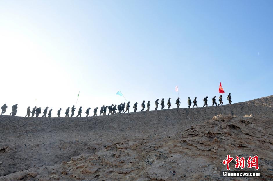 Kashgar border detachment of Xinjiang armed police frontier force conducts actual combat training for new recruits on Jan. 15, 2015. The training subjects include rescuing hostages, surprise attacks, breaking out encirclement and other field training. (Chinanews/Peng Xincheng) |