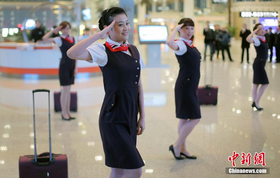 Railway Station's staff members show new suit in Lanzhou