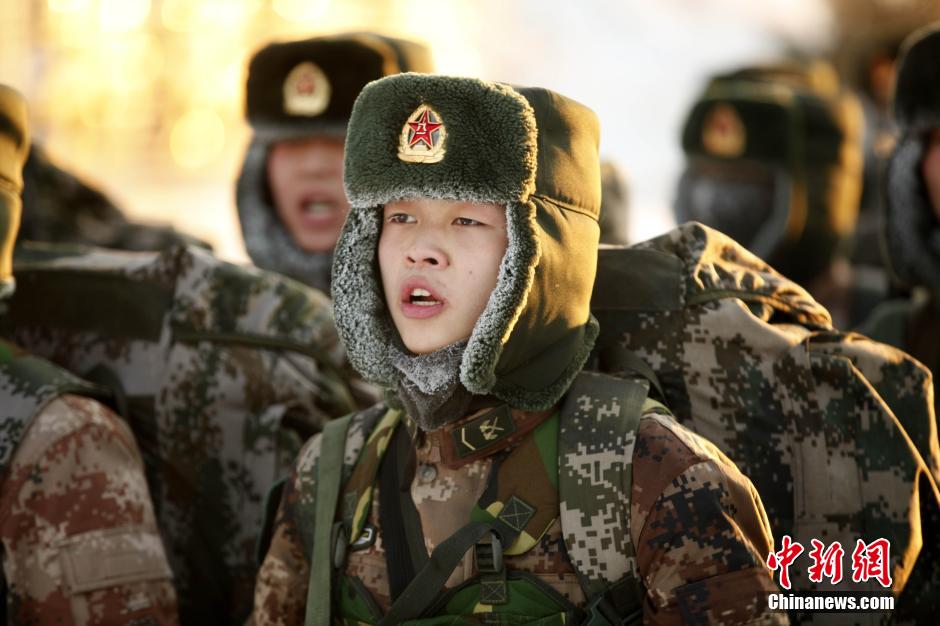 Braving the extreme cold, the frontier soldiers conduct rapid march training in Heihe, northeast China's Heilongjiang province to improve the combat effectiveness of the troops under cold weather conditions. (Photo/CNS)