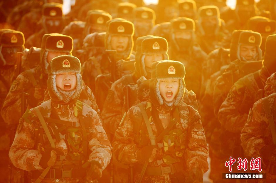 Braving the extreme cold, the frontier soldiers conduct rapid march training in Heihe, northeast China's Heilongjiang province to improve the combat effectiveness of the troops under cold weather conditions. (Photo/CNS)