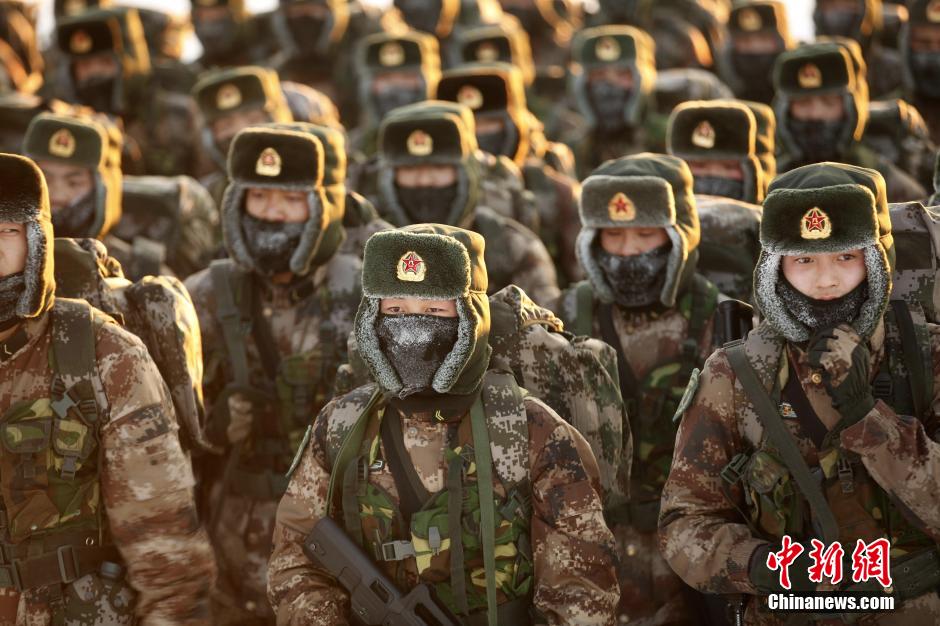 Braving the extreme cold, the frontier soldiers conduct rapid march training in Heihe, northeast China's Heilongjiang province to improve the combat effectiveness of the troops under cold weather conditions. (Photo/CNS)