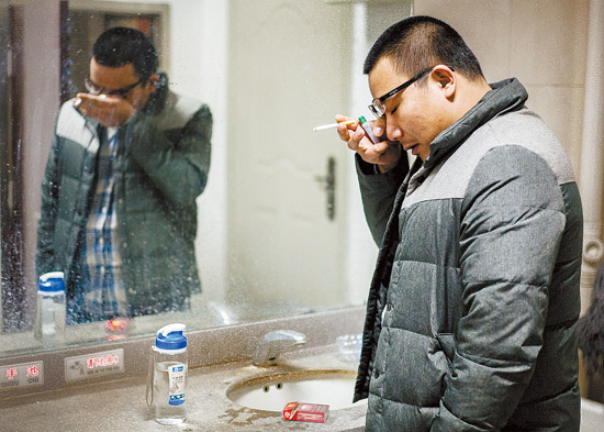 12:18 a.m., Dec. 15, 2014- Li Yue, a lawyer in a law firm in Beijing, prepares for the Master of Public Administration examination. Li applied for a month vacation to prepare for the emanation. (Photo/China Youth Daily)