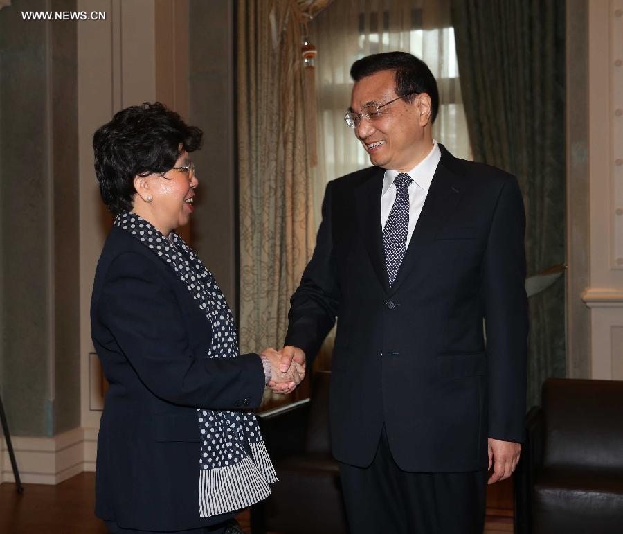 Chinese Premier Li Keqiang (R) meets with the World Health Organization Director General Margaret Chan in Zurich, Switzerland, Jan. 22, 2015. (Xinhua/Liu Weibing