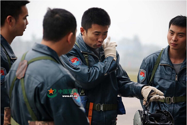 Jiang Jiaji, 34, (M)a squadron commander with the Chengdu Military Command conducts combat training with elite aviators together. (Photo/ Liu Yinhua)