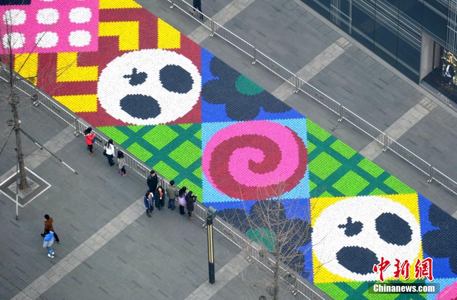 A huge beautiful "carpet", made from 19 tons of candies in different colors, is seen in Chengdu on Jan. 21, 2015. (Chinanews/Liu Zhongjun)