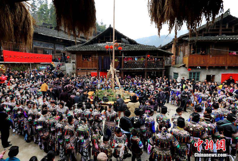 Dong people dance and sing to celebrate their New Year’s Day on Jan. 20, 2015. UNESCO has placed 18 Dong villages on the tentative World Heritage site list for China. (CNS/ Li Changhua)