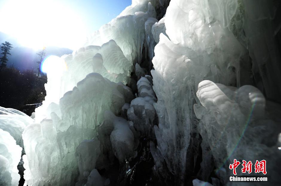 Ice waterfalls appear at Guanhegou National Forestry Park in northwest China's Gansu province on Jan.21, 2015. (CNS/Yang Yanmin)