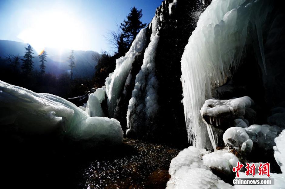 Ice waterfalls appear at Guanhegou National Forestry Park in northwest China's Gansu province on Jan.21, 2015. (CNS/Yang Yanmin)