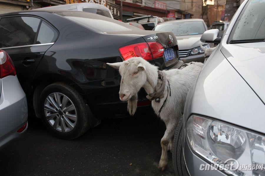 Sheep learn to walk through the dense traffic. (Photo/cnwest.com)