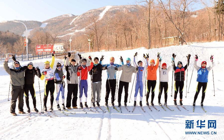 A group photo of the Chinese hearing-impaired ski team and their coach taken on Jan. 23, 2015.