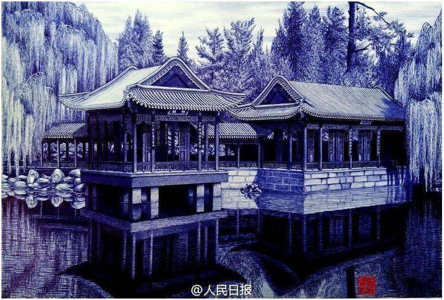 Can you tell? These are all ball pen paintings! A group of ball pen paintings has gone viral online. Many netizens have expressed their admiration for the skillful painter. (Photo/Weibo of People's Daily Online)
