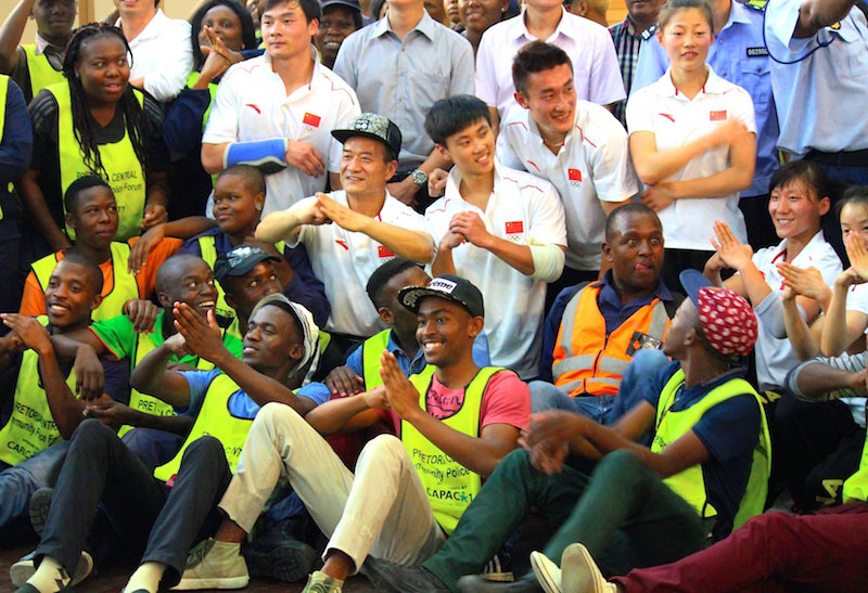 South African Spectators take photo with Kung-Fu performers. (People's Daily Online/ Zhang Jiexian)
