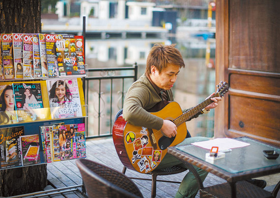 The man came to Beijing from Jilin a few years ago. He ran a bar by the Liangma River with his countrymen. In spare time, he wrote songs, singing and playing the guitar.