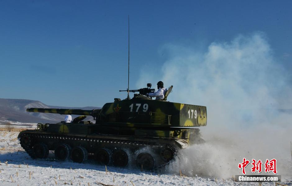 In the severe cold of minus 34 degrees Celsius, a brigade of the 16th Group Army conducts field training in northeast China on Jan. 27, 2015, so as to improve the combat ability of soldiers in severe weather. (Chinanews/Yang Zaixin)