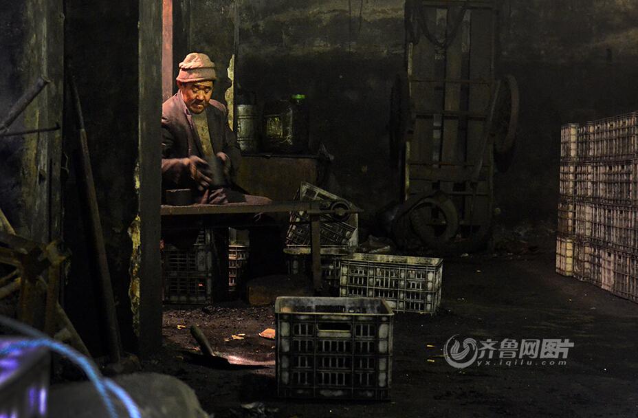 Lu, a worker, packs honeycomb briquettes in the coalhole. (Photo/Iqilu.com)