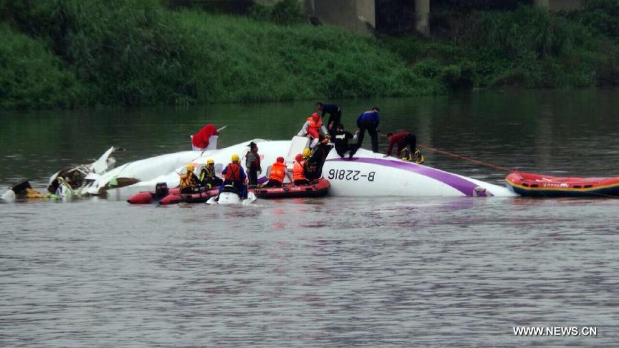 Flight ATR-72, which was headed for Kinmen from Taipei, had 58 people on board including 31 passengers from the Chinese mainland. It crash landed in the Keelung River after clipping an elevated motorway with its wing at 10:55 a.m., ten minutes after take off from Taipei Songshan Airport.