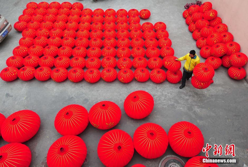 As the Spring Festival approaches, all kinds of beautiful palace lanterns cover a courtyard in a palace lantern village in Gaocheng county, Shijiazhuang, north China’s Heibei province on Feb. 2, 2015. Currently, there are over 1,100 palace lantern producing factories in Gaocheng county, with annual value of production reaching 1 billion yuan. The palace lantern output of the county accounts for 80 percent of the national total. The lanterns are in over 20 countries and regions. (Chinanews/Zhai Yujia)