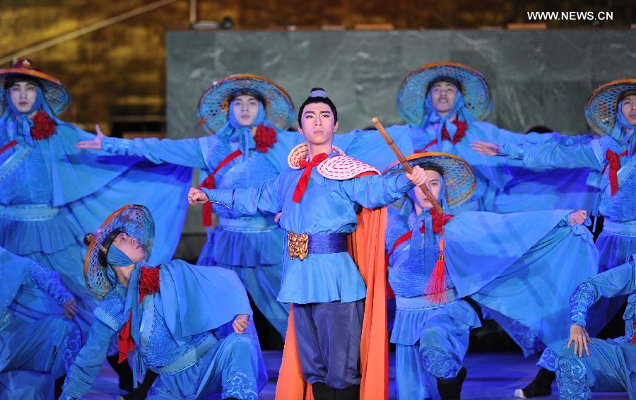 Artists perform during a Chinese Dance Drama entitled "The Dream of the Maritime Silk Road", at the United Nations headquarters in New York on Feb. 4, 2015. (Xinhua/Niu Xiaolei)