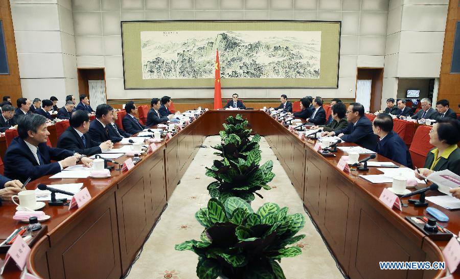 Chinese Premier Li Keqiang presides over a symposium to solicit opinions from members of China's non-Communist parties, representatives of industry and commerce federations and personages without party affiliation on the draft of an annual government work report in Beijing, capital of China. (Xinhua/Yao Dawei) |