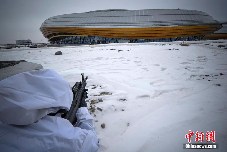 About 100 SWAT members take part in an anti-terror drill at the stadiums for the 13th National Winter Games in Urumqi, northwest China's Xinjiang Uyghur Autonomous Region on Feb. 4, 2015. The 13th National Winter Games will be held in January 2016 in Urumqi. The construction of the sports venues has already been completed. (CNS/Fang Tao) |