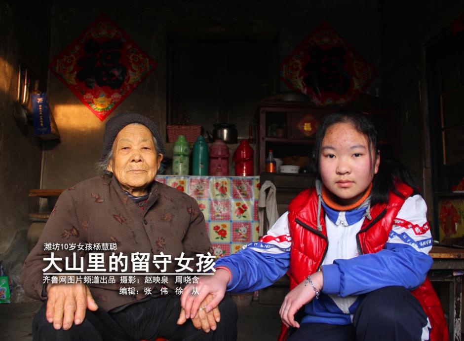 Yang Huicong, 10, was born in Taolin village of Weifang, Shandong province. She has lived for a long time with her 80-year-old grandmother. Since her father works away from home, Yang has to take care of her old grandmother. Yang is a fourth grade schoolgirl. Her mother abandoned her father when she was two years old. Her father gets cataract but still goes out to work. The little girl does cooking and washing every day, and she works hard in school and got high score in exams. (iqilu.com/Zhao Yingquan Zhou Xiaohan)