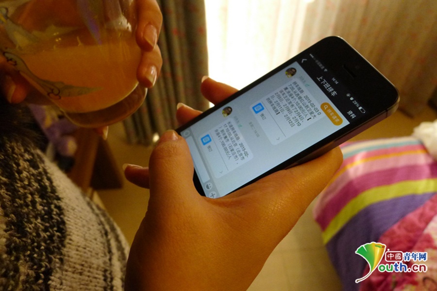 Xiao Ji uses the telephone software for carpooling with other friends. Internet brings convenience to us, especially making our life simple and fashionable. Xiao Ji thinks 'one person one car' is a waste of money and aggravates air pollution. If everyone has the consciousness of carpooling, the situation of dense smog will be eased. (Youth.cn/Gao Lei)