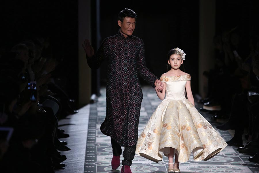 Xiuqiu, a nine-year-old Chinese girl, appears at the 2015 Haute Couture Spring-Summer collection fashion show in Paris. The girl is the first Chinese child model at Paris fashion show. She has won high appreciation from the fashion circle with her unique Chinese character and professional presentation. (Photo/Xinhua)