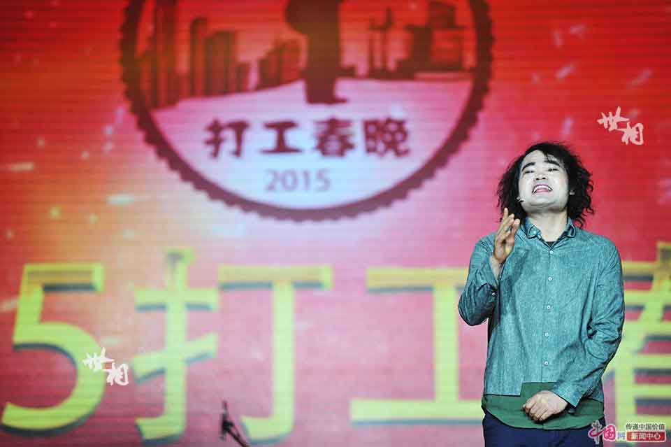 Xu Duo, chief director of the 2015 Migrant Workers' Spring Festival Gala, performs the comedy sketches.(China.org.cn/Wei Yao)