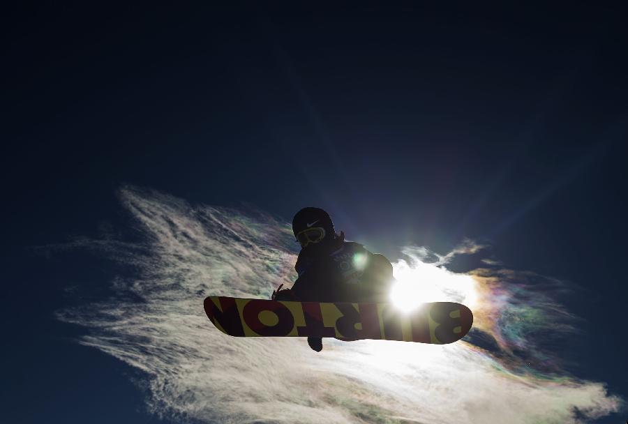 Cai Xuetong of China trains before the final of ladies' halfpipe at the 27th World Winter Universiade in Granada, Spain, Feb. 7, 2015. Cai claimed the title with 82.50 points in the event. (Xinhua/Fei Maohua)
