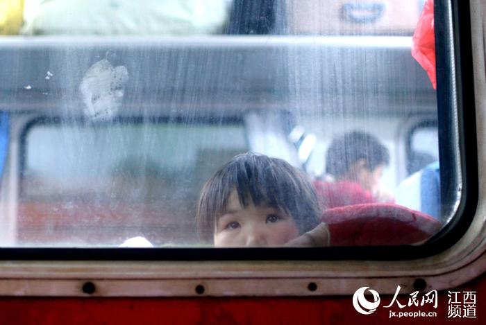 With the approaching of China's lunar new year, or the Spring Festival, more and more people have embarked on their journey to return home in Chunyun or the Spring Festival travel rush, the world's biggest travel rush. On the late night of Feb. 7, People's Daily Online reporters shot the expression of passengers in the carriages at the Nanchang station, which is the only provincial hub station along the Beijing-Kowloon Railway. Most of them looked tired but were happy because they would reunite with their families after one night travel. (People.com.cn/Photo)