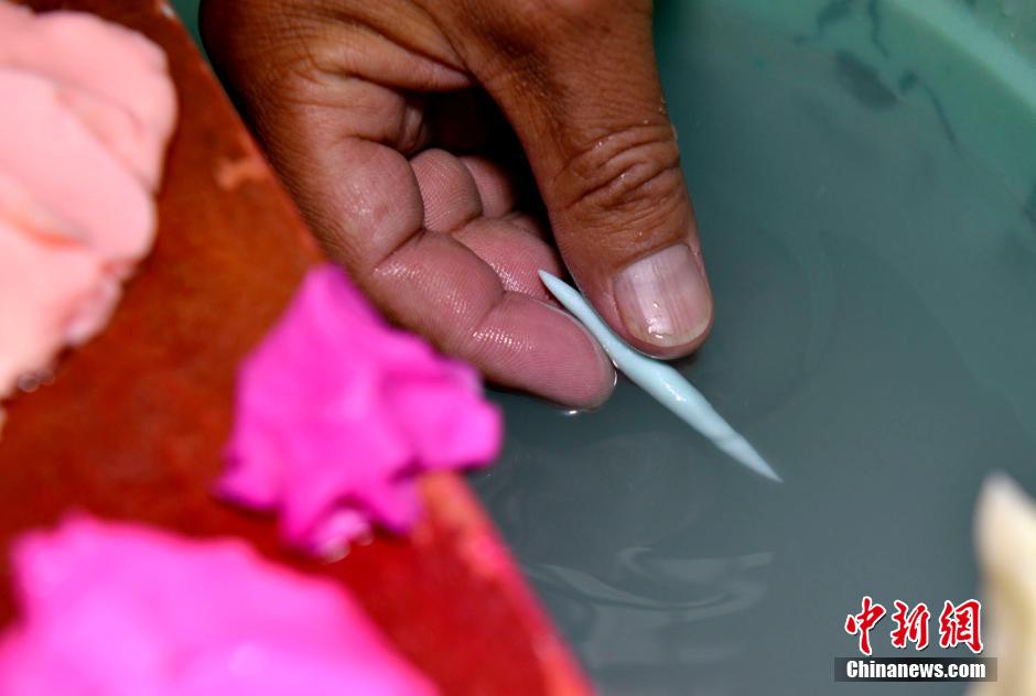 The workers constantly dip their fingers in freezing water, as butter tends to melt when it heats up. (CNS/Li Lin)