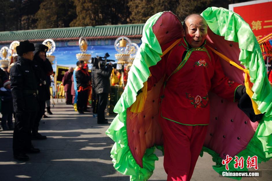 Parade rehearsal of the Spring Festival temple fair is held in Badachu Park in Beijing on Feb. 9, which will vividly portray the heritage of the century-old temple fair to the public. (CNS/Sheng Jiapeng)