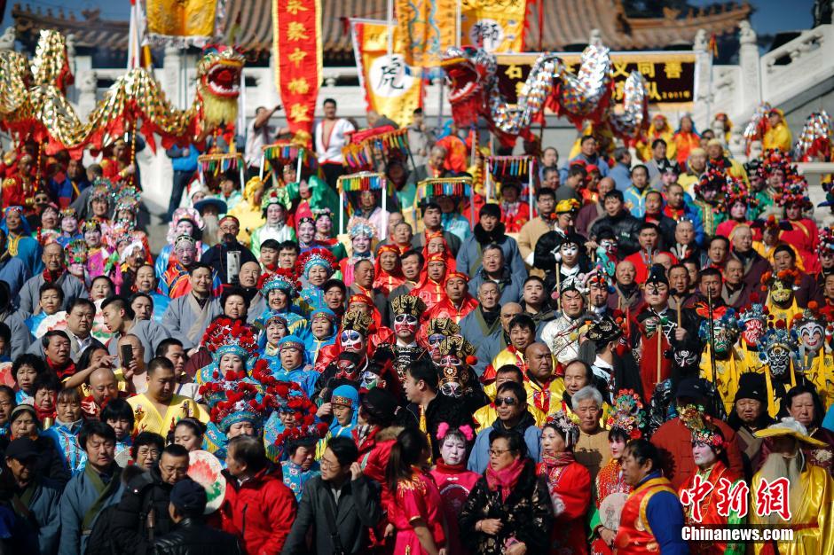 Parade rehearsal of the Spring Festival temple fair is held in Badachu Park in Beijing on Feb. 9, which will vividly portray the heritage of the century-old temple fair to the public. (CNS/Sheng Jiapeng)