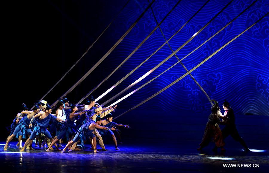 Actors perform during a dance drama entitled "The Dream of the Maritime Silk Road" in Quanzhou, southeast China's Fujian Province, Feb. 11, 2015. (Xinhua/Wei Peiquan)
