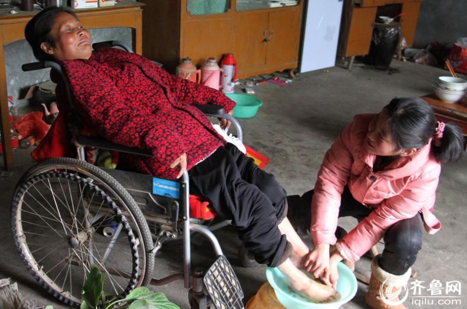 Left-behind girl Zhang Mingyan, 11, takes care of her bedridden mother alone. Her mother has serious spinal problems and can’t get out of bed. Her father has gone out to work for a long time. The little girl supports the whole poor family. (iqilu.com/Qi Jingfeng)