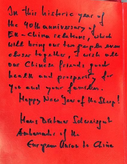 BEIJING, February 12 (People's Daily Online) On the occasion of the Chinese Spring Festival, EU Ambassador H.E Mr. Hans-Dietmar Schweisgut extends wishes to the Chinese people as follows: