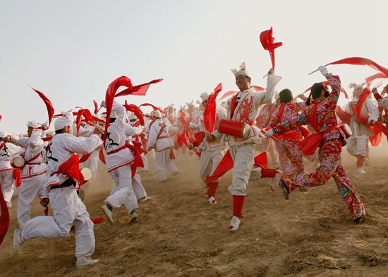 The Ansai Waist Drum dance is a unique, large-scale folk dance with a history of more than 2,000 years. Like a hurricane sweeping across the yellow earth, the dance displays the unsophisticated and wild character of peasant life on the Loess Plateau, revealing its unique artistic charm. It is the best time to enjoy Ansai Waist Drum dance in January of Chinese lunar calendar.